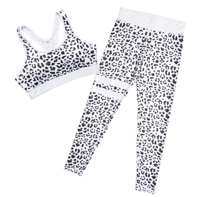 白を基調としたヒョウ柄のクールなジム/フィットネス/ヨガウェアのセットアップ(パット付、取外し可)です☆