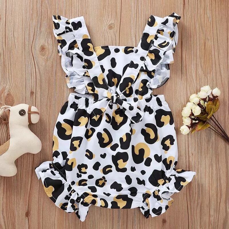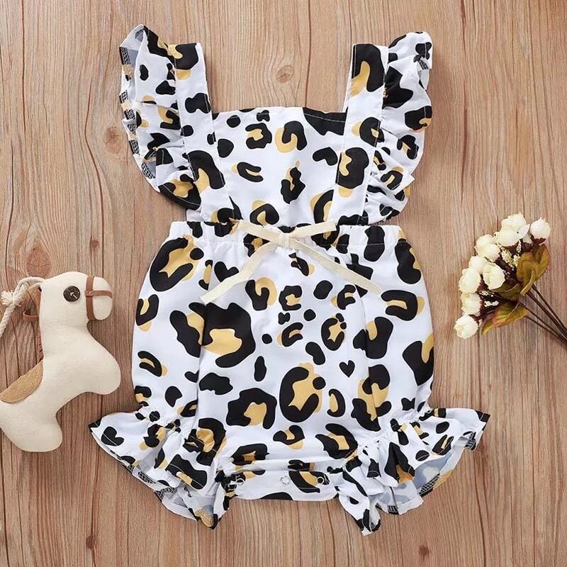 【即納】ヒョウ柄☆ベビーフリルロンパース